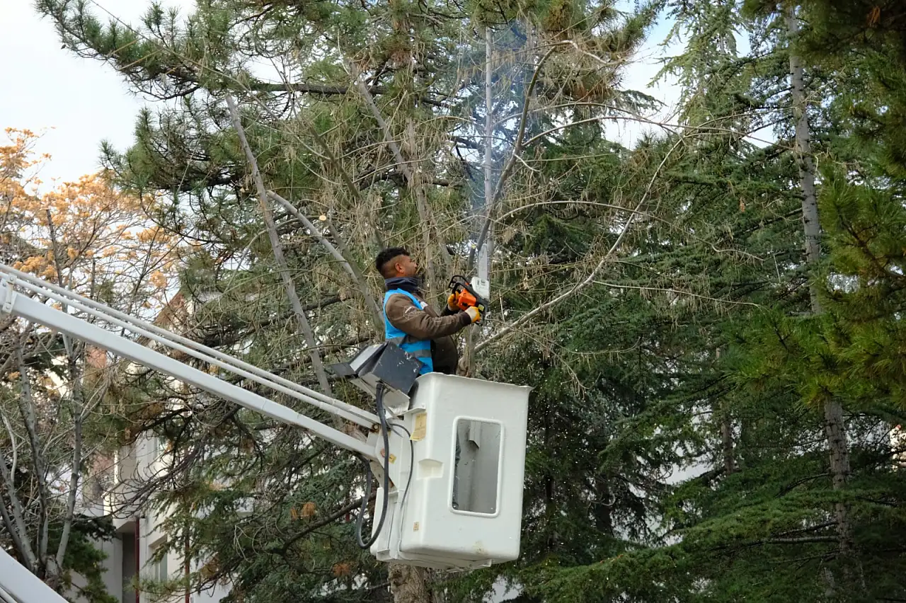 Konya'da güvenlik için ağaçlarda risk odaklı budama mesaisi
