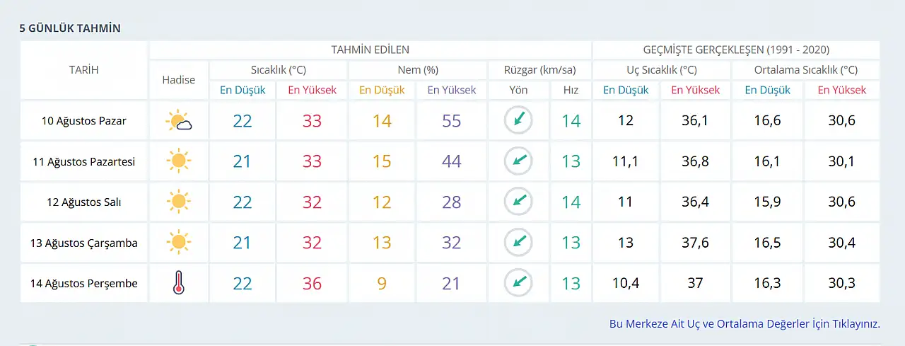5 GÜN BOYUNCA NASIL OLACAK?