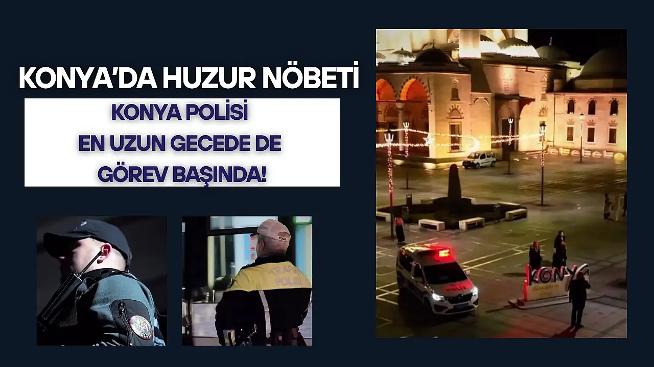 Konya İl Emniyet Müdürlüğü, yılın en uzun gecesinde de vatandaşların huzuru için sahada olacak. 21 Aralık gecesi kent genelinde görev başında olan polisler, mesai mefhumu gözetmeden denetim ve devriye çalışmalarını sürdürecek.