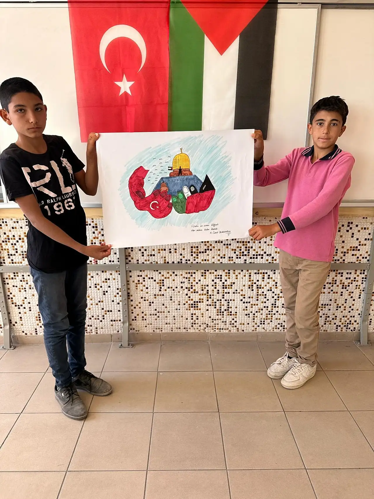 İhlas Haber Ajansı’nın aktardığı bilgilere göre, ilçeye bağlı Kayalı Mahallesi Kepez İlk-Ortaokulu öğrencileri, etkinlikte pankartlar hazırlarken, sunumlar gerçekleştirdi ve şiirlerle Filistin halkının yanında olduklarını güçlü bir şekilde ifade etti.