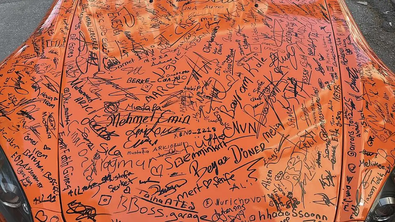 25 yaşındaki esnaf Muhammet Çetin’in, kendi çevresiyle birlikte imzalayarak dikkat çektiği turuncu renkli Honda S2000 Cabrio, Çetin’in iş yerinin karşısında park halinde adeta ilgi merkezi haline geldi. Sosyal medyada da hızla yayılan imza geleneği, aracın kaplamasının üzerine uygulandı.