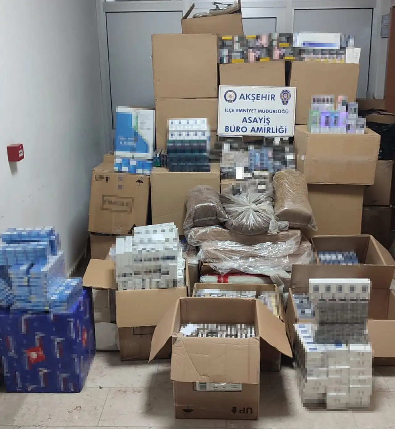 Konya'nın Akşehir ilçesinde polis ekipleri tarafından yapılan operasyonda 142 bin adet boş makaron, tütün ürünleri ve gümrük kaçağı elektronik sigaraya el konuldu.