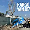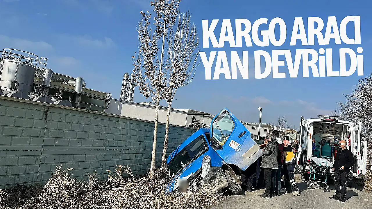 Konya'da kontrolden çıkan kargo minibüsü, yol kenarındaki kanala yan yattı.