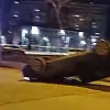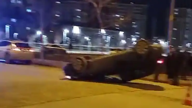 Edinilen bilgilere göre, seyir halindeki otomobil, istikametine göre sağında park halinde bulunan biri beyaz diğeri gri renkli iki araca çarptı. Çarpmanın etkisiyle sürücüsünün direksiyon hakimiyetini kaybettiği araç, yol üzerindeki şeritte ters dönerek durabildi.