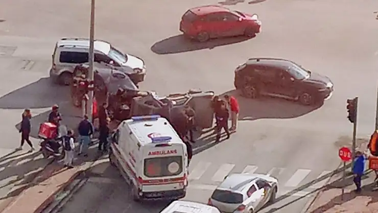 Konya'nın Meram ilçesinde hafif ticari araç ile otomobilin çarpıştığı kazada, çarpışmanın şiddetiyle bir araç yan yattı. Yaralanan otomobil sürücüsü hastaneye kaldırılırken, bölgede polis ekipleri inceleme başlattı.