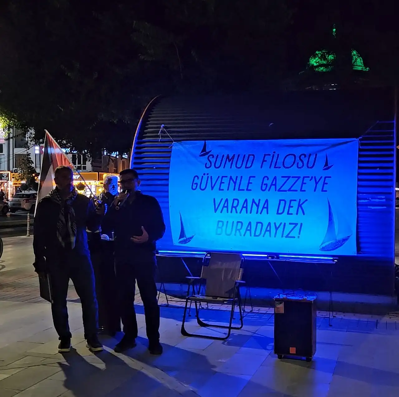 "Bir haftadır Konya Kültürpark’ta, Gazze’nin yaralı kalbine dokunmak için nöbetteydik. Her gün, her saat, her dua; bir çocuğun korkusuna, bir annenin gözyaşına, bir babanın çaresizliğine ortak olmaktı niyetimiz. Sumud Filosu’nun taşıdığı umut, bizim yüreğimizde yankı buldu. Çünkü biz, uzaklarda yaşanan acılara “bize ne” diyemeyenleriz.