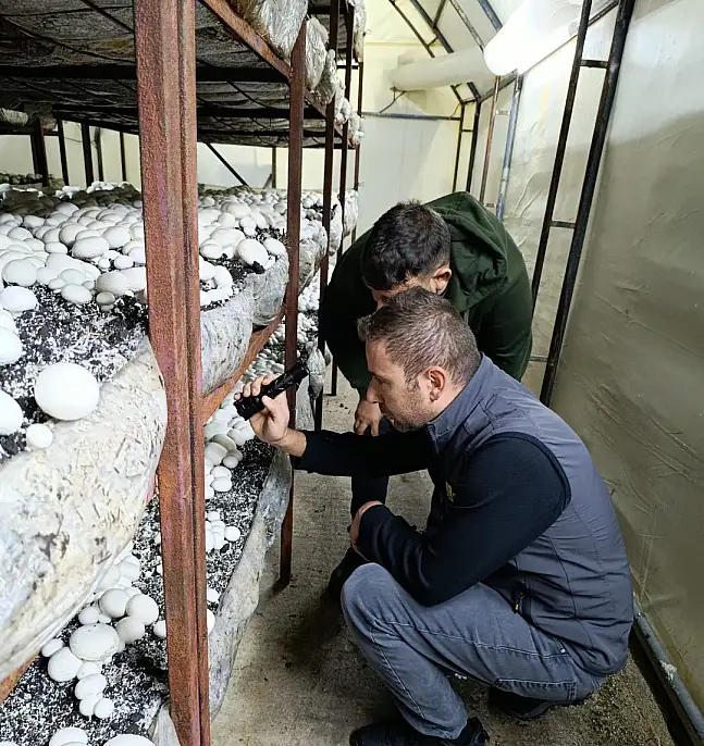 Beyşehir İlçe Tarım ve Orman Müdürlüğü ekipleri, Bahçelievler Mahallesi'ndeki kültür mantarı üretim tesislerini denetledi. Kompostlar incelendi, riskler belirlendi, üreticilere hastalık ve zararlılarla mücadele konusunda bilgi verildi.
