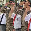 Baba oğul anıtı önünde düzenlenen programda, Türk bayrağının göndere çekildi, saygı duruşunda bulunuldu ve İstiklal Marşı okundu.