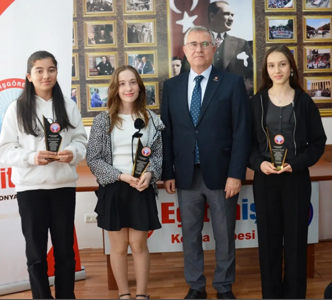 Ödül töreninde Eğitim-İş Konya Şube Başkanı Bahattin Ertuğrul ve yönetim kurulu üyeleri tarafından resim yarışmasında Konya genelinde birinci gelen Karatay Karaaslan Cumhuriyet İlkokulu Öğrencisi Nehir Melis Emekli ile Şiir Yarışmasında birince gelen Selçuklu Hoca Ahmet Yesevi Ortaokulu Öğrencisi Zeynep Almina Avcı’ya Yarım altın ve plaket verilirken, resim yarışmasında ikinci gelen Selçuklu Şerife Akkanat İlkokulu Öğrencisi Ömer Yiğit Yıldırım ile şiir yarışmasında ikinci gelen Emirgazi 15 Temmuz Şehitleri İmam Hatip Ortaokulu öğrencisi Neslihan Kocaman’a çeyrek altın ve plaket verildi. Resim yarışmasında üçüncü gelen Meram Özel Yöntem Yaka İlkokulu öğrencisi Kağan Yaylak ile şiir yarışmasında üçüncü gelen Meram Özel Yöntem Ortaokulu öğrencisi Elif Beren Yorulmaz’a da gram altın ve plaket verildi.