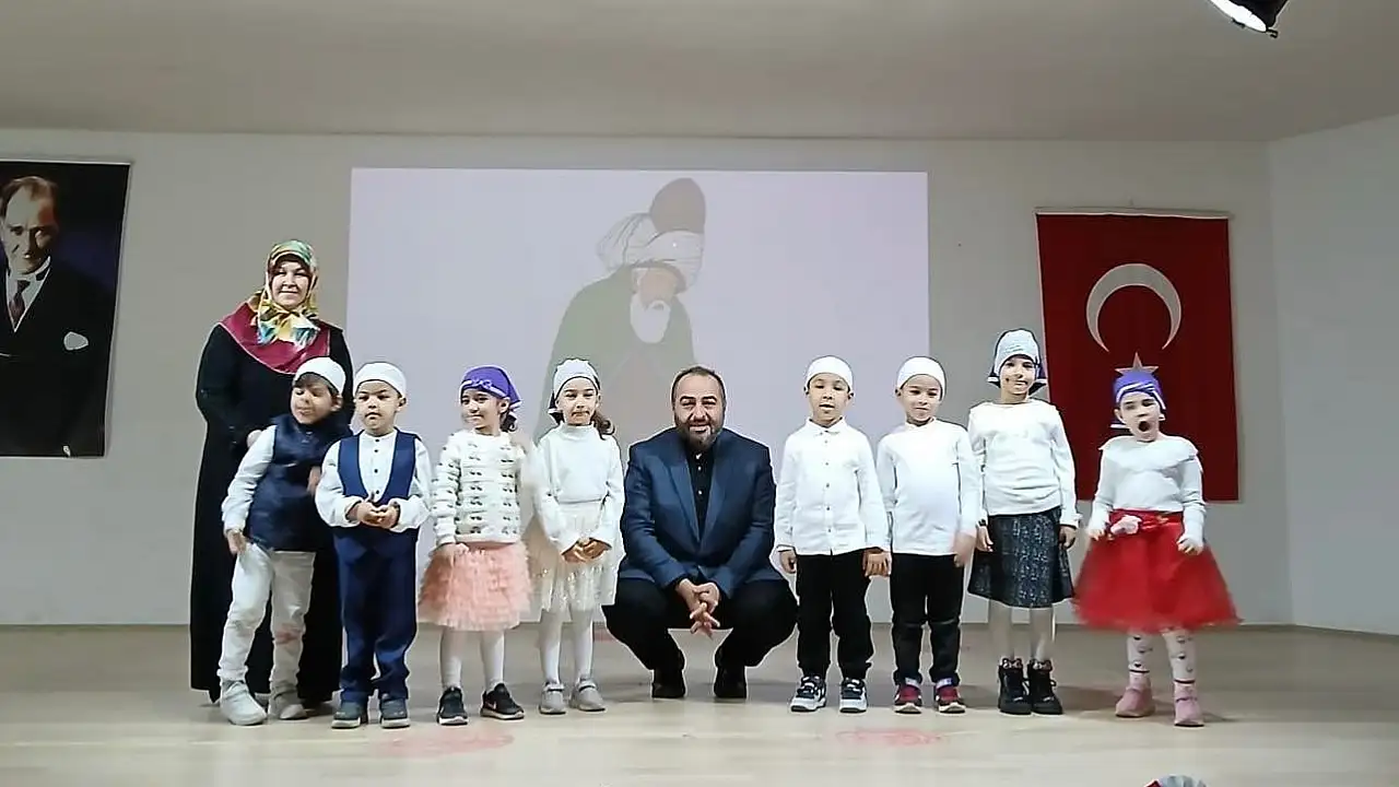 Beyşehir'de 4-6 yaş Kur'an Kursu öğrencileri Mevlana Haftası dolayısıyla program düzenledi.