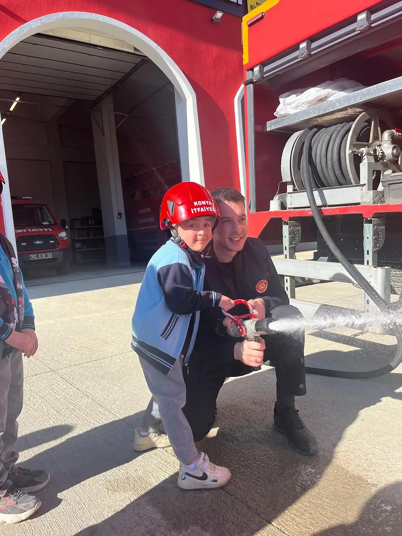 Konya Büyükşehir Belediye Başkanı Uğur İbrahim Altay'ın destekleriyle hayata geçirilen uygulamalı eğitim programı kapsamında, ilçe genelindeki 12 ilkokuldan gelen birinci sınıf öğrencileri itfaiye tesislerinde ağırlandı. Bozkır İtfaiye Grup Amirliği ekipleri tarafından verilen eğitimde, minik öğrencilere muhtemel bir afet veya yangın anında nasıl davranmaları gerektiği, yangının tehlikeleri ve acil durumlarda ulaşılacak hatlar gibi hayati bilgiler aktarıldı.