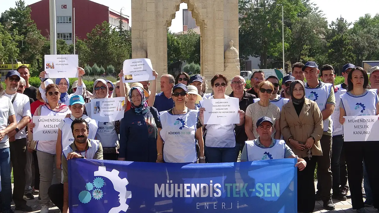 Konya'da Mühendis Tek-Sen Enerji Sendikası kamu mühendisleri ve teknik hizmetler çalışanları zam talebiyle basın açıklaması gerçekleştirdi.
