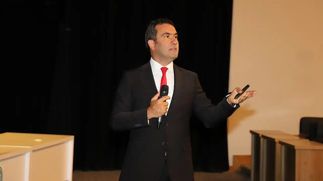 Seminerde konuşan NEÜ Aile ve Gençlik Uygulama ve Araştırma Merkezi Müdürü Dr. Ali Bozgedik, evliliğin uzun ve zorlu bir yolculuk olduğuna dikkat çekerek, gülmenin ilişkilerdeki dönüştürücü gücünü vurguladı.
