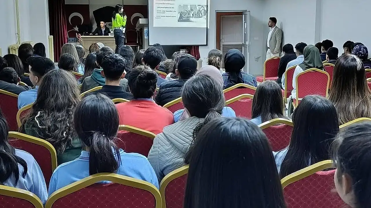 Şehit Oğuzhan Aydınbelge Mesleki ve Teknik Anadolu Lisesi sosyal faaliyetler salonundaki programda Karapınar İlçe Trafik Denetlemeden polis memurları projenin amacını anlattı.