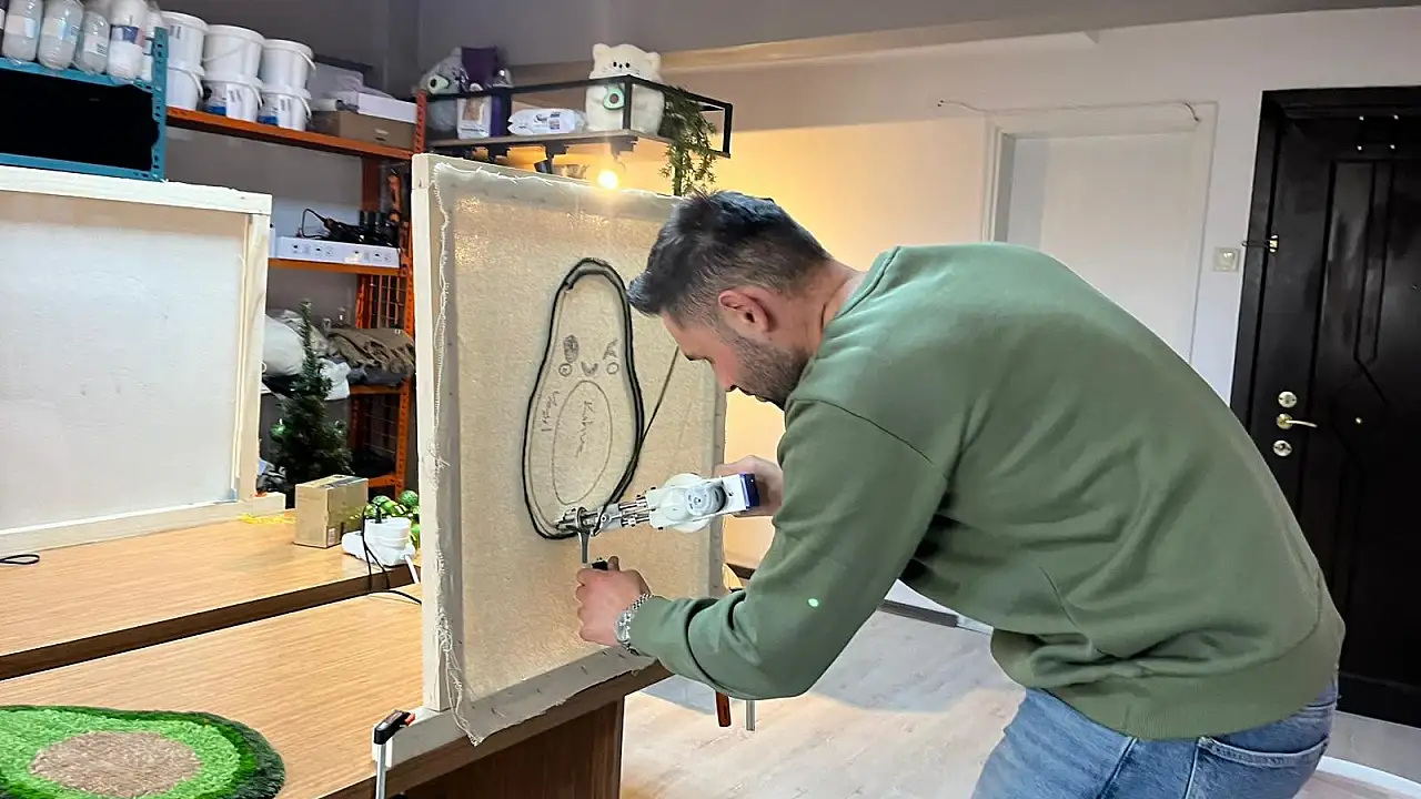 Konya'da aldığı özel eğitimle tufting zanaatını öğrenen 32 yaşındaki Emre Aral, tüm birikimini Eskişehir'de kendi atölyesini kurmak için harcadı. Şehirde bu alandaki tek işletmenin sahibi olan genç girişimci, sanata meraklıların ilgi odağı oldu.