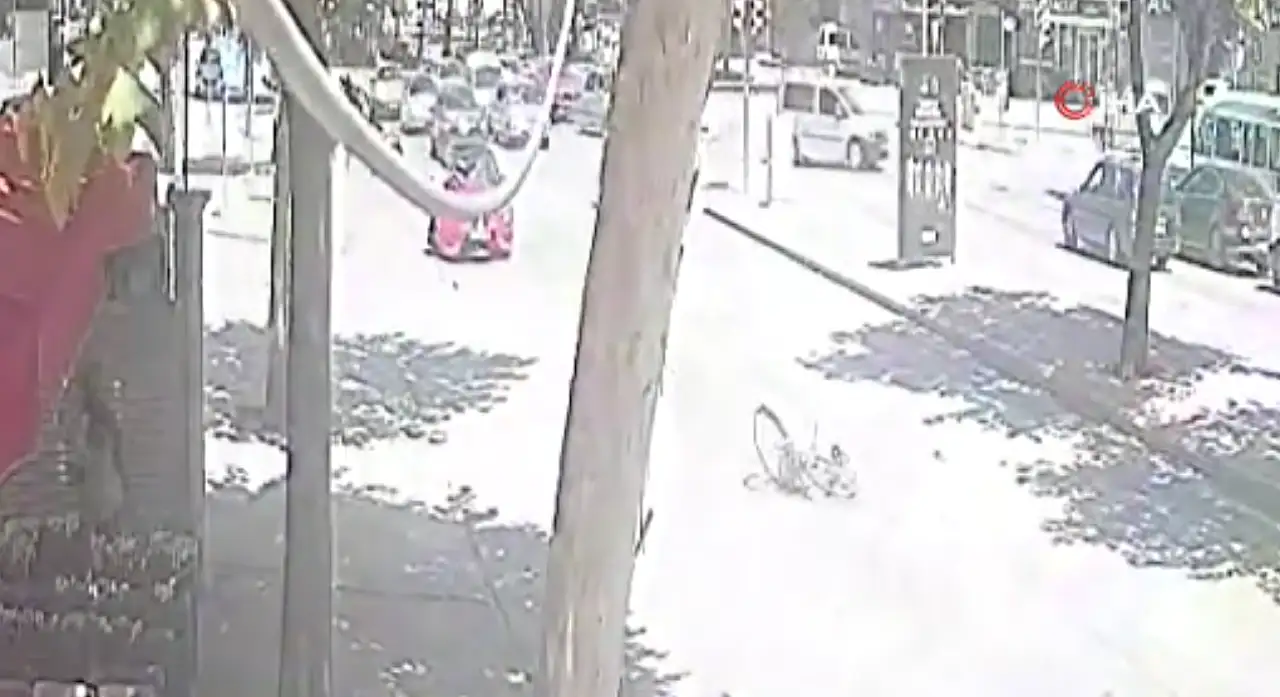 Olay anı ise saniye saniye güvenlik kamerasına yansıdı. Görüntülerde Ömer Kahraman'ın bisikletiyle ilerlediği, ışıklardan araçların hareket ettiği sırada otomobilin çarptığı bisikletin savrulduğu anlar yer aldı.