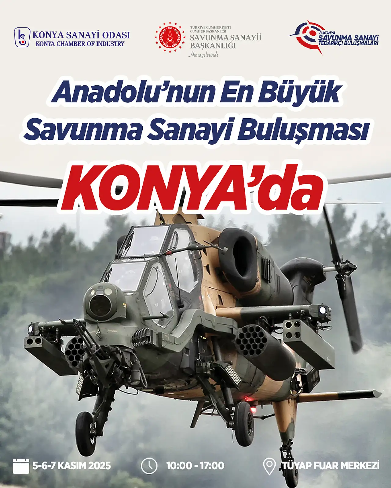 Anadolu’nun sanayi ve teknoloji üssü Konya, 5-7 Kasım tarihlerinde savunma sanayiinin önemli buluşmalarına ev sahipliği yapacak. T.C. Cumhurbaşkanlığı Savunma Sanayii Başkanlığı himayelerinde ve Konya Sanayi Odası öncülüğünde gerçekleştirilecek 8. Konya Savunma Sanayi Tedarikçi Buluşmaları, sektörün liderlerini bir araya getirecek.