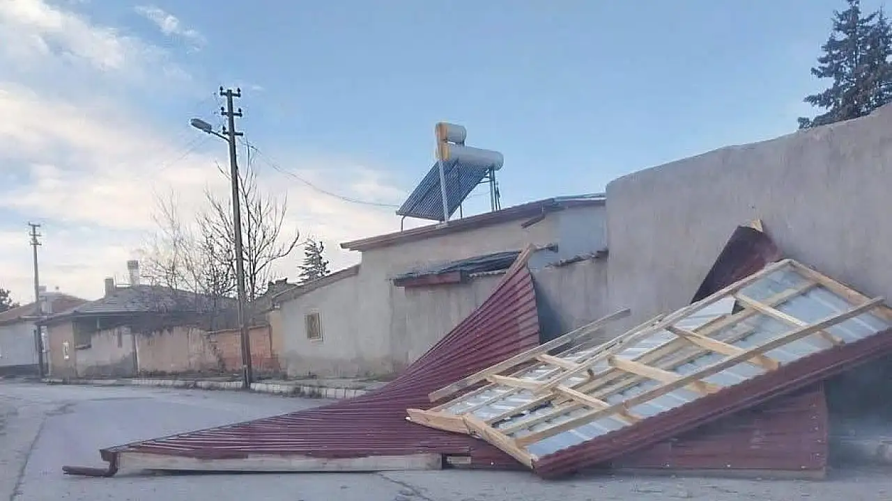 Konya'nın Kadınhanı ilçesinde etkili olan fırtına, yıktı geçti. Fırtına dolayısıyla, bir evin çatısı uçtu. Seydişehir'de ise, kaymakamlık binası önündeki bayrak, yarıya indi.