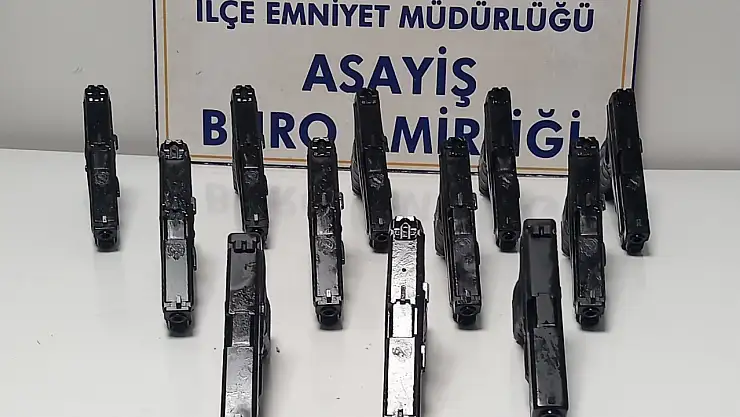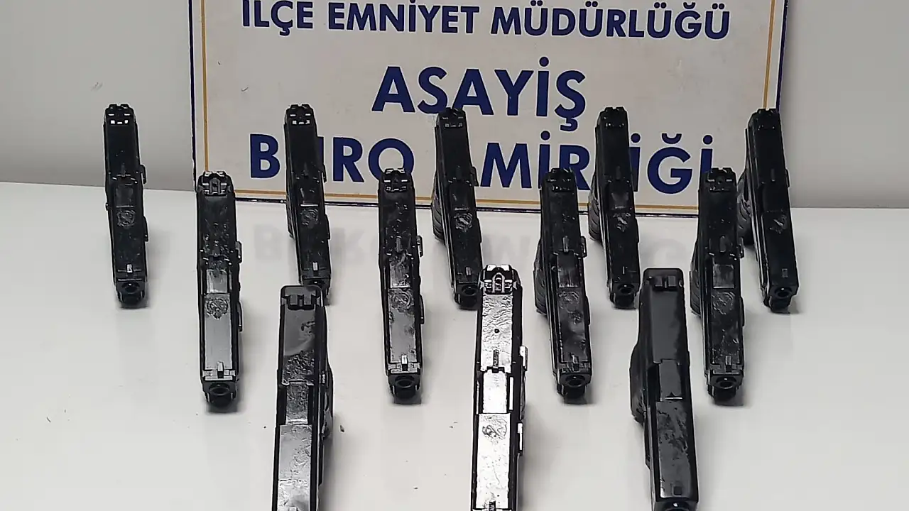 Şüphelilerin bulunduğu araçlarda yapılan aramalarda, farklı bölmelere gizlenmiş halde 17 adet tabanca, tabanca şarjörleri ve çok sayıda mermi ele geçirildi.