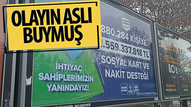 Konya Büyükşehir Belediyesi'nin şehrin farklı yerlerindeki billboardlara verdiği 'Sosyal Kart ve Nakit Desteği' duyurusu kamuoyunda tepkilere neden oldu. "İhtiyaç Sahiplerinin Yanındayız" başlığıyla hazırlanan açık hava reklam panolarında, 880 bin 284 vatandaşa toplamda 1 milyar 559 milyon 337 bin 818 TL tutarında sosyal kart ve nakit desteği sağlandığı belirtildi. Açıklanan rakamlar ise kamuoyunda büyük yankı uyandırdı. Bazı kesimler, bu kadar fazla sayıda yardıma muhtaç insan olmasını ekonomik sıkıntıların bir göstergesi olarak değerlendirdi.