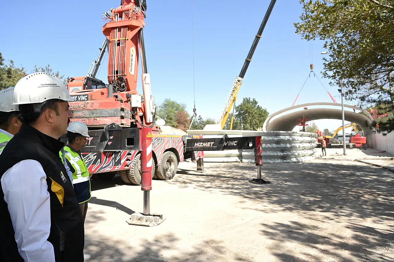 Konya Büyükşehir Belediye Başkanı Uğur İbrahim Altay, köprülü kavşakta yürütülen çalışmaları yerinde inceleyerek son durum ile ilgili bilgi aldı.