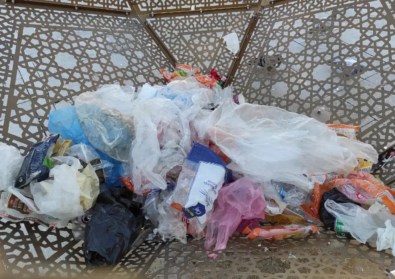 Konya Büyükşehir Belediyesi’nin Ramazan ayında şehrin manevi atmosferini yansıtmak amacıyla Hükümet Meydanı’na yerleştirdiği altıgen motifli ışıklı süsleme, çevre duyarsızlığı nedeniyle adeta çöp konteynerine dönüştü.