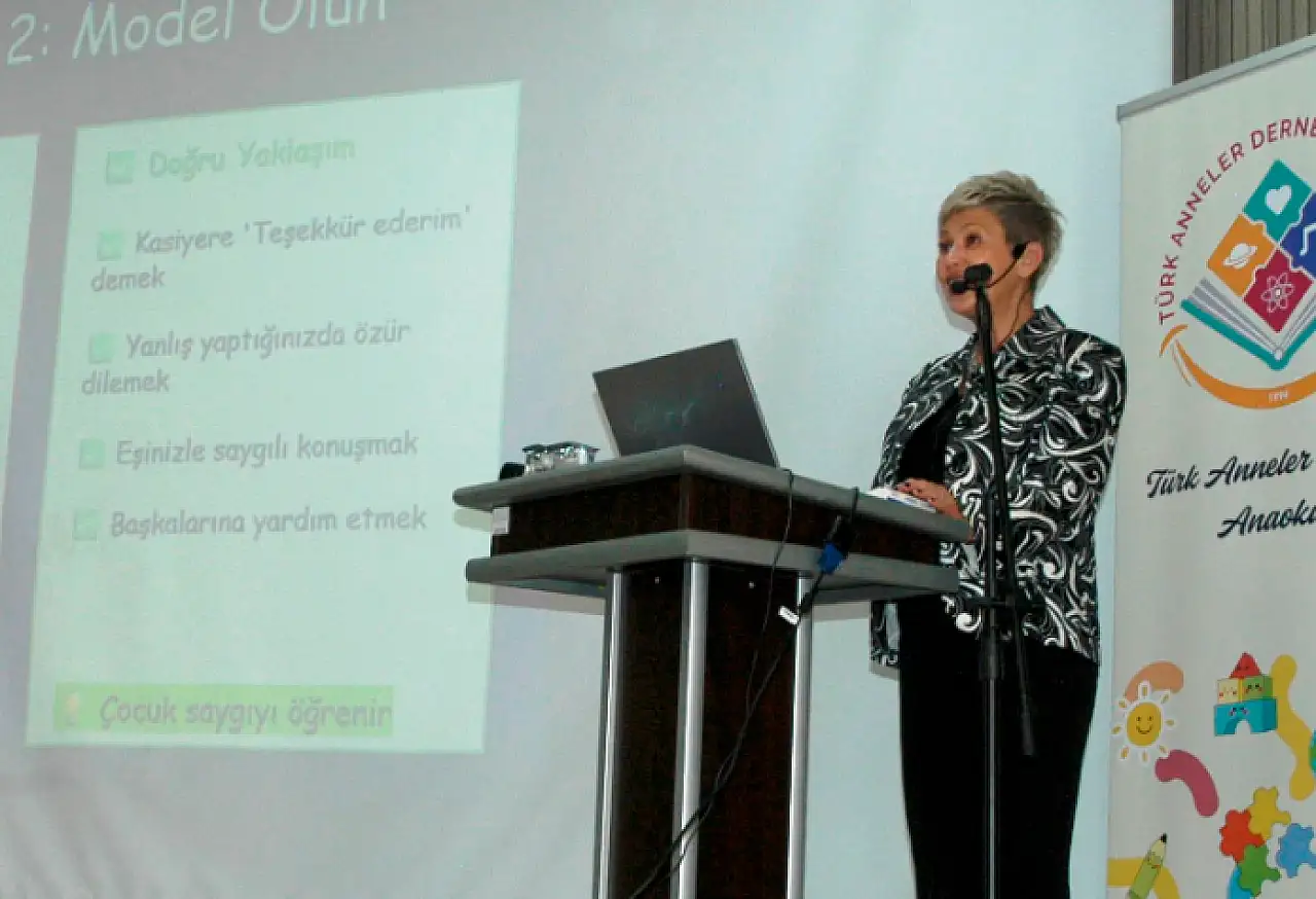 Protokol konuşmalarının ardından sahneye çıkan Doç. Dr. Deniz Günaydın, çocukların sınır kavramı, özgürlük bilinci ve akran zorbalığı konularında velilere önemli bilgiler aktardı. Günaydın, konuyu örneklerle ve uygulamalı anlatımlarla destekleyerek ailelerin çocuklarıyla kurdukları iletişimi güçlendirecek ipuçları paylaştı.
