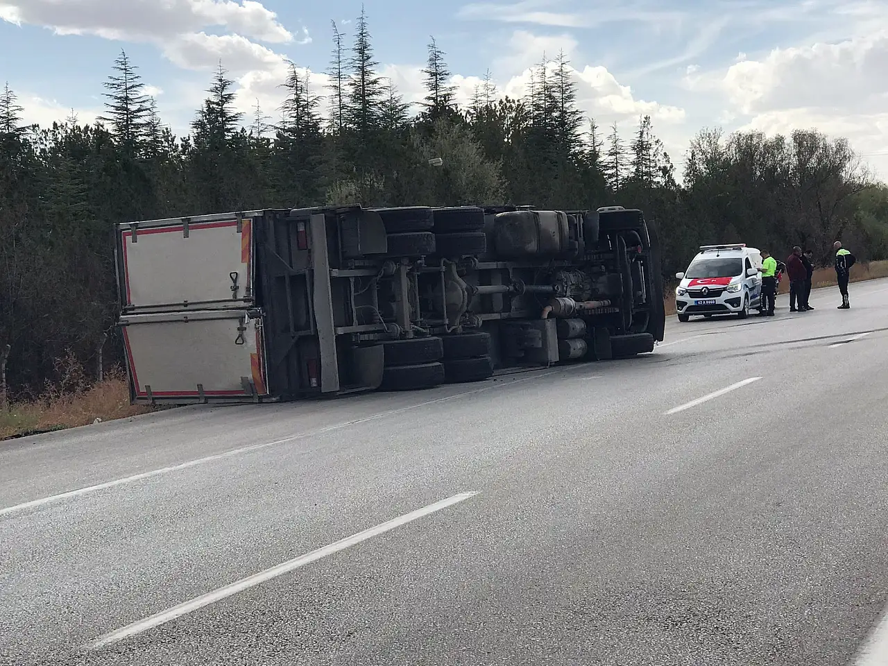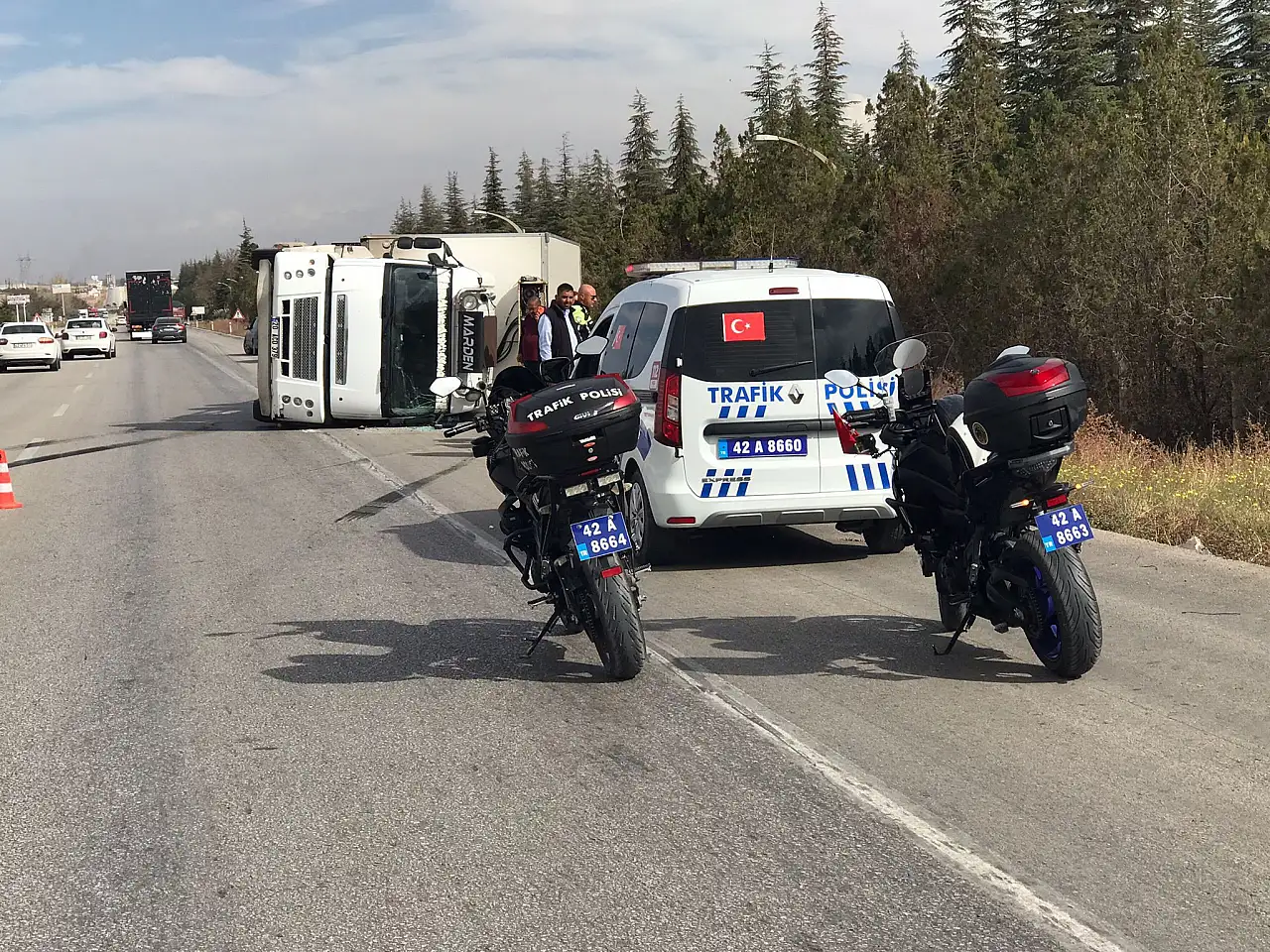 Konya'da yağ yüklü kamyon devrildi: 1 yaralı