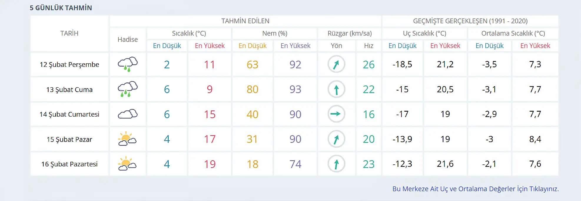15 Şubat Pazar günü parçalı bulutlu bir hava öngörülüyor. Sıcaklıklar yükselişini sürdürerek 4 dereceye karşılık 17 dereceye kadar çıkacak. Nem oranı yine yüksek seviyelerde, yüzde 90 dolayında olacak.