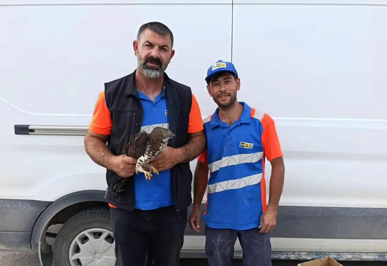 İlçeye bağlı Hotamış Mahallesinde çalışma yapan KOSKİ çalışanları Tarık Akyıldız ve Bekir Dağlıoğlu, boş arazide yaralı şahin olduğunu gördü. Elektrik tellerine çarparak yaralandığı belirlenen şahini tedavisinin yapılması için otomobile alan Akyıldız ve Dağlıoğlu, ilçe merkezine götürdü.