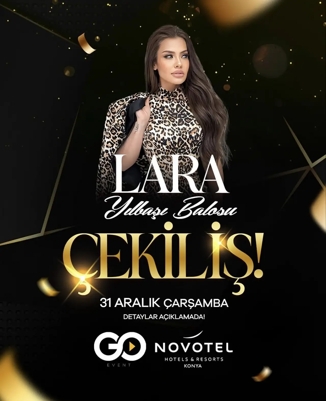Konya’da 2026’ya unutulmaz bir geceyle girmek isteyenler için geri sayım başladı. Go Event organizasyonuyla düzenlenen Lara’lı Yılbaşı Balosu, 31 Aralık gecesi şehrin prestijli adreslerinden Novotel Konya’da gerçekleştirilecek. Kapıların saat 19.30’da açılacağı gecede müzik, eğlence ve şıklık bir araya gelecek.