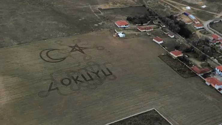 Konya'nın Kulu ilçesinde bir çiftçi, traktörüyle tarlasına Türk bayrağı çizdi. Yaklaşık 45 dakika süren çalışma, kısa sürede ilgi gördü.