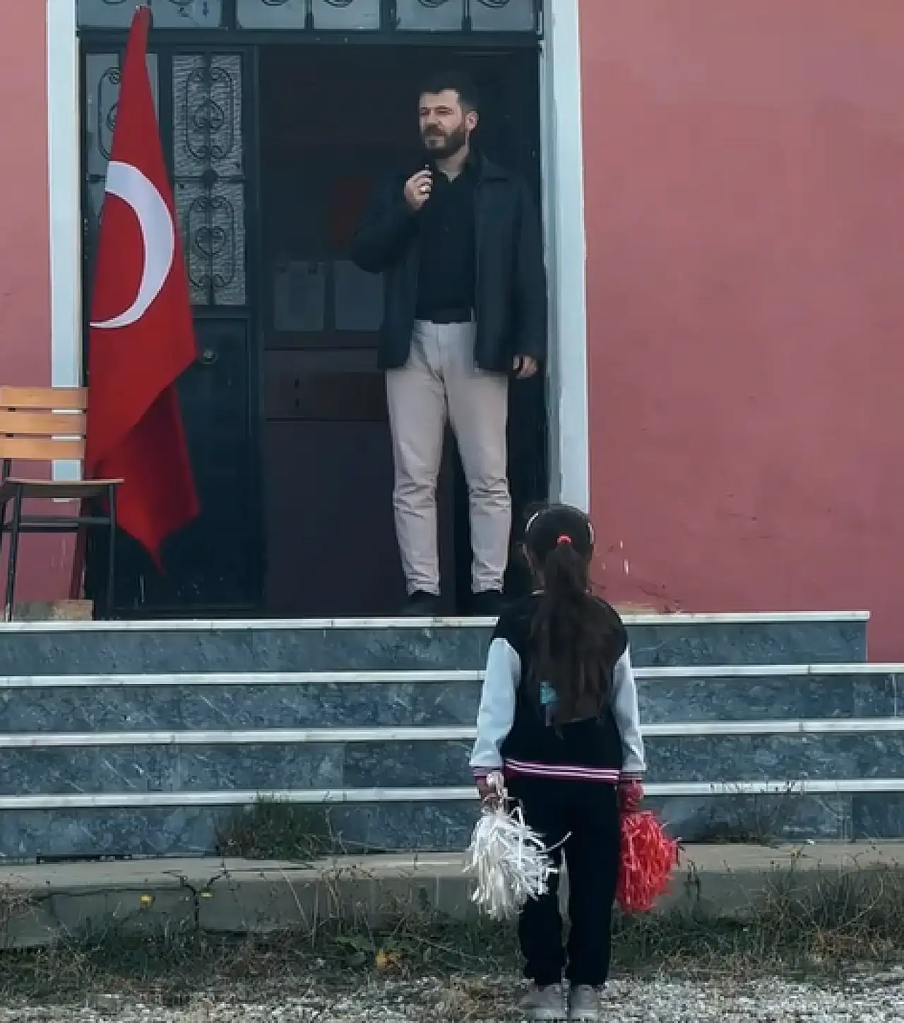 Öğretmen Muhammet Bağ ve 3'üncü sınıf öğrencisi İlayda Kozlu, tek başlarına şiir okuyup, ay yıldızlı al bayrağı dalgalandırdı. Öğretmen ve öğrencinin kaydedilen görüntüleri sosyal medyada gündem oldu. Milyonlara ulaşan görüntüler takdir topladı.