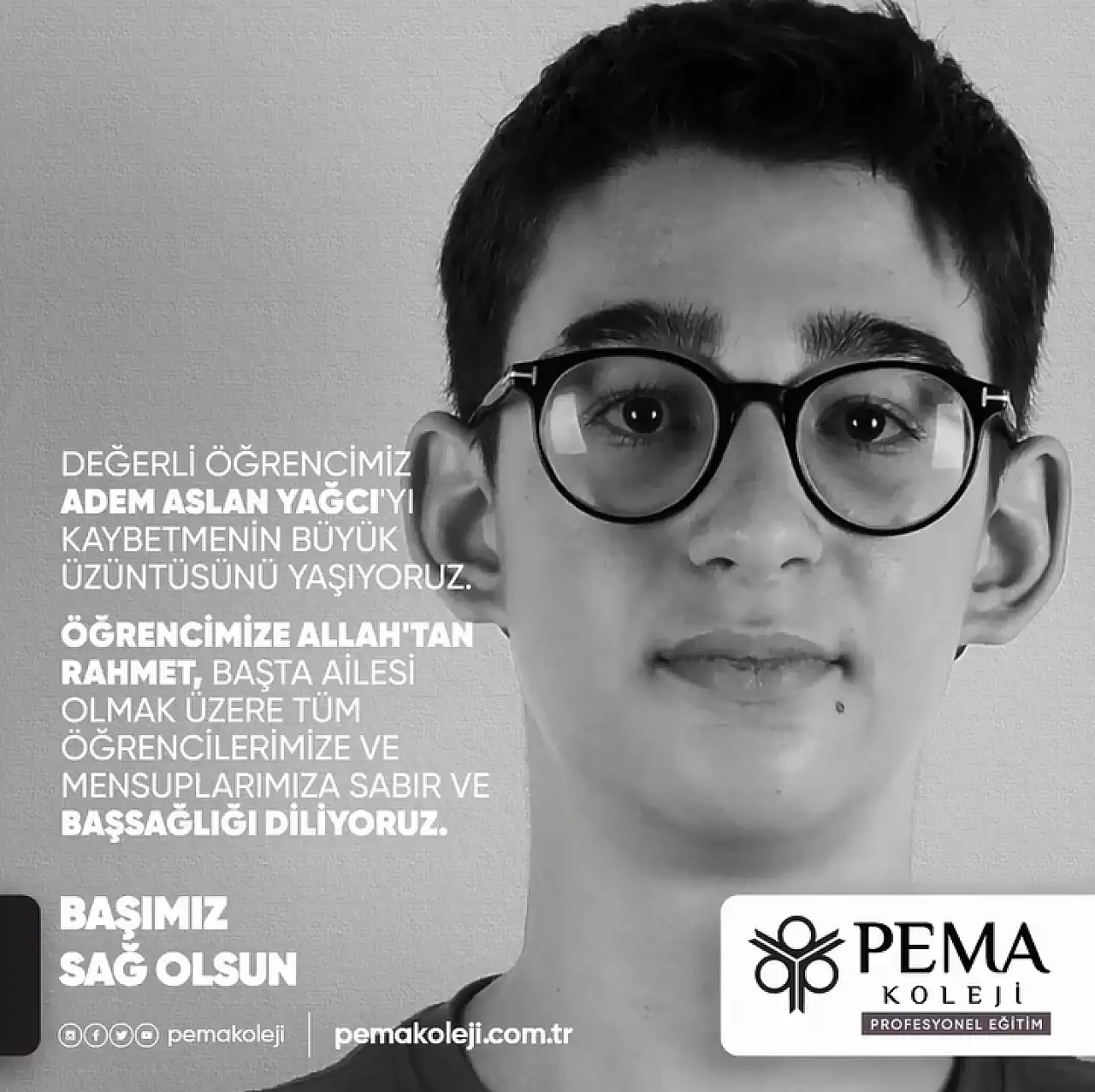 “Değerli öğrencimiz Adem Aslan Yağcı'yı kaybetmenin büyük üzüntüsünü yaşıyoruz. Öğrencimize Allah'tan rahmet, başta ailesi olmak üzere tüm öğrencilerimize ve mensuplarımıza sabır ve başsağlığı diliyoruz.”