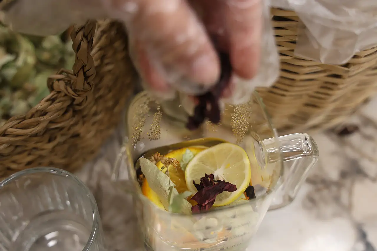Karışımı evde hazırlamak isteyen vatandaşlara karışıma da değinen Elife Kulekaya, “Kaynar suyun içine yaş zencefil ve tarçını atıp iki dakika kaynattım, sonra altını kapattım. İçine kış ayının vazgeçilmezi harika bir antiseptik, antidepresan özelliği olan ıhlamur, isterseniz çiçek ıhlamur da atabilirsiniz, kuşburnu çok iyi bir soğuk algınlığına birebir iyi gelir ve isterseniz ada çayı da atabilirsiniz içine. Sonra da C vitamini tabii ki olmazsa olmazımız limon. Dilerseniz aroma vermesi ve C vitamini açısından katkı arttırması açısından da portakal atabilirsiniz. Sonra bunu demlemeye bırakıyoruz. 5 dakika sonra servise hazır” diyerek sözlerini noktaladı.