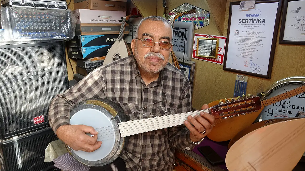Gaziantep’te yaşayan 72 yaşındaki Davut Akdoğan, 11 yaşında ağabeyinin hediye ettiği bağlama ile başladığı müzik yolculuğunu 61 yıldır aynı tutkuyla sürdürüyor. Çaldığı enstrümanlardan yetiştirdiği öğrencilere kadar hayatını müziğe adayan Akdoğan, bugün hâlâ dükkanında ud, saz ve cümbüş sesleriyle gününü geçiriyor.