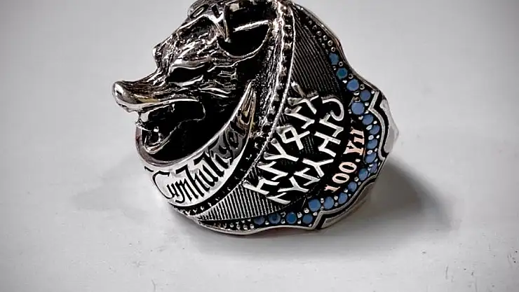 Yüzük tamamen Türklüğü anlatan, Türkiye Cumhuriyeti'ni anlatan güzel bir tasarım oldu. Üstünde bozkurt, bozkurtu çevreleyen hilal, hilalin içerisinde Türkiye Cumhuriyeti yazısı.