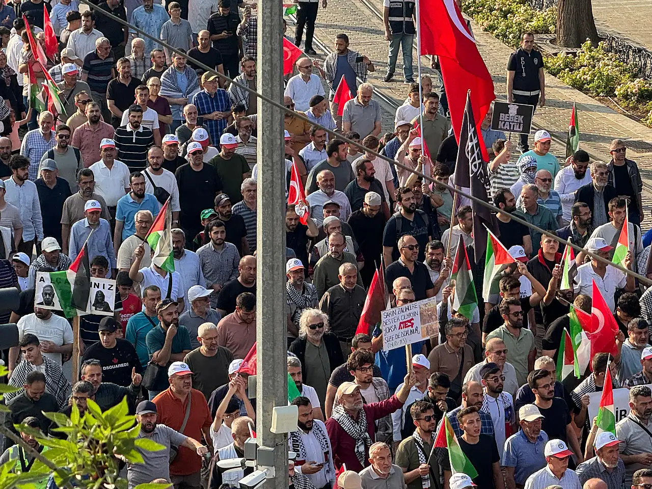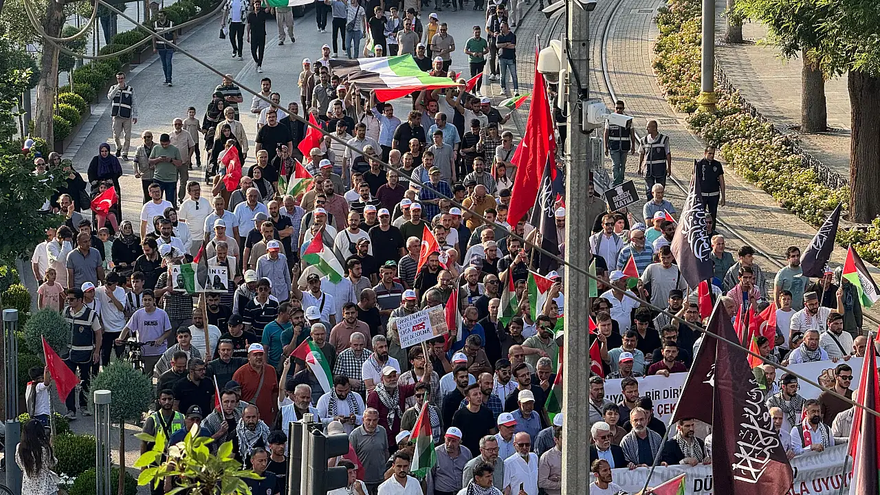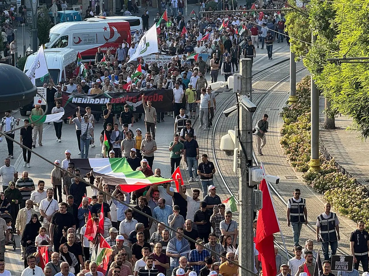 Etkinlikte, İsrail’e yönelik tepkilerin dile getirildiği ve Filistin halkına destek mesajlarının öne çıktığı görüldü. Katılımcıların yürüyüş boyunca pankartlar taşıdığı, sloganlar atarak Filistin’e desteklerini ifade ettiği aktarıldı.