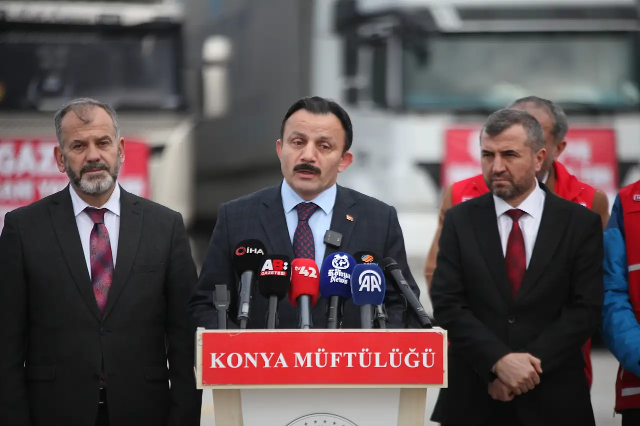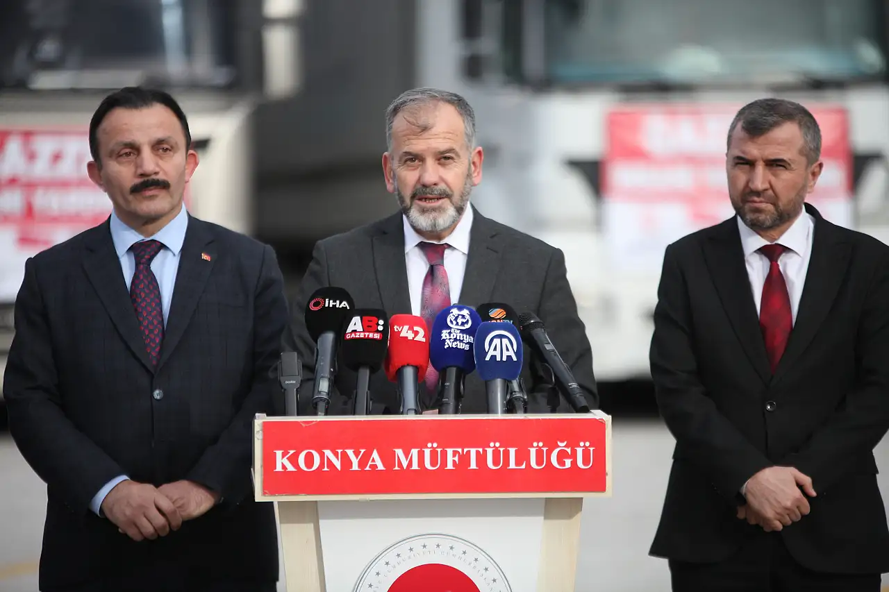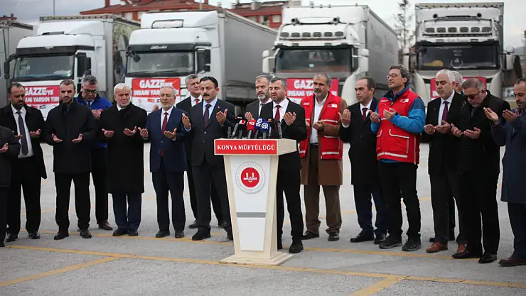 Programa katılan Diyanet İşleri Başkan Yardımcısı Prof. Dr. Ahmet İshak Demir de, "Sıkıntıda olan kardeşlerimize destek olmak üzere ciddi bir yardımı kardeşlerimize gönderiyoruz. Konya'mız büyük bir teşekkürü hak ediyor" diye konuştu. Konuşmaların ardından tırlar Mersin Limanına gitmek üzere yola çıktı.