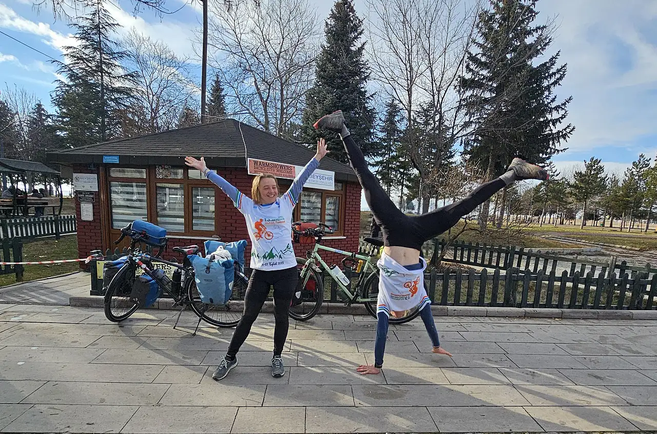 Zorlu ve ilham verici yolculuklarında çift, Uluslararası Beyşehir Bisiklet Evi’nde ağırlandı. Beyşehir’e gelen yabancı tur bisikletçilerine yönelik sağlanan destekle dikkat çeken dernek, konuklarına otel konaklaması ve yemek imkânı sundu.