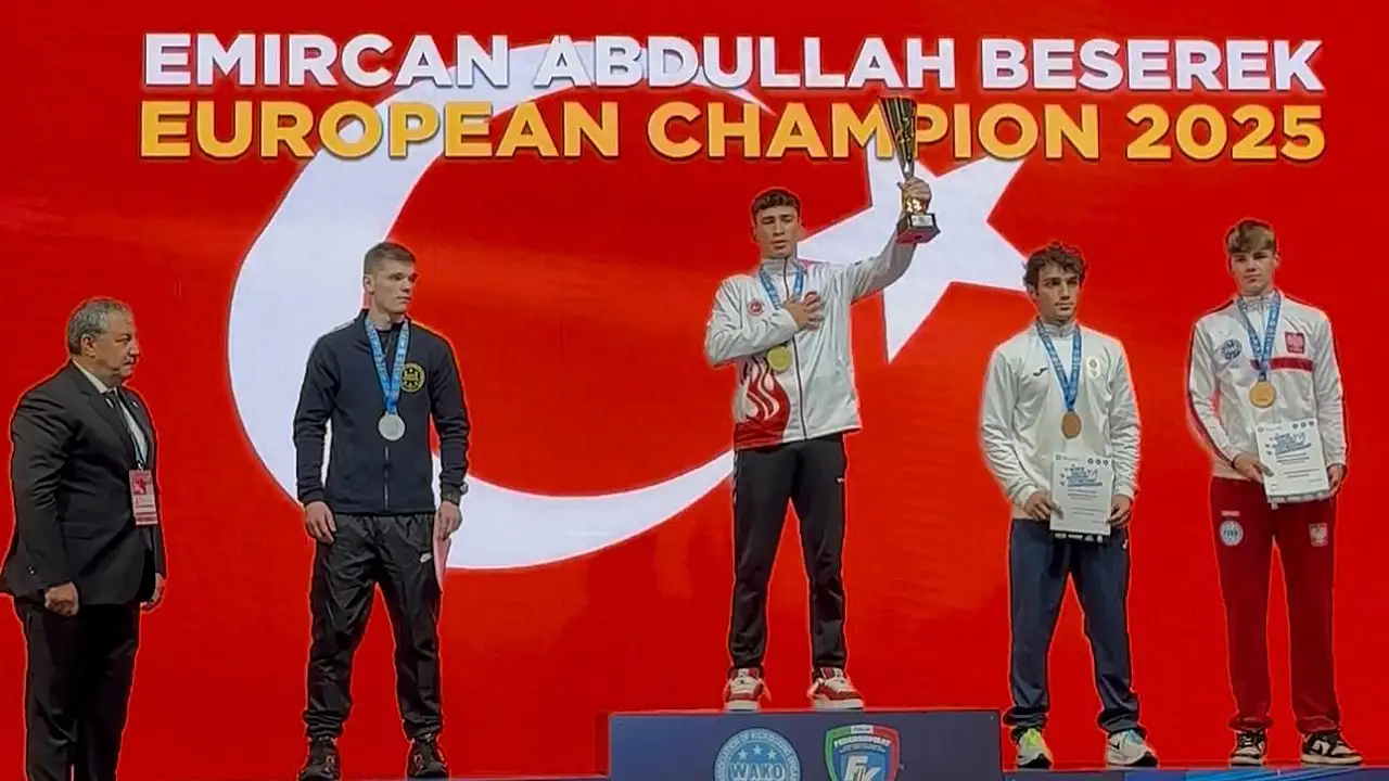 Meram Belediyespor'un milli sporcuları, İtalya'nın Jesolo kentinde 12-21 Eylül tarihleri arasında gerçekleştirilen WAKO Avrupa Gençler Kick Boks Şampiyonası'nda büyük bir başarıya daha imza attı. Emircan Abdullah Beserek, birbirinden zorlu mücadeleler sonunda Avrupa Şampiyonu olurken, Kazım Mert Dereli ise Avrupa ikinciliğini elde etti.