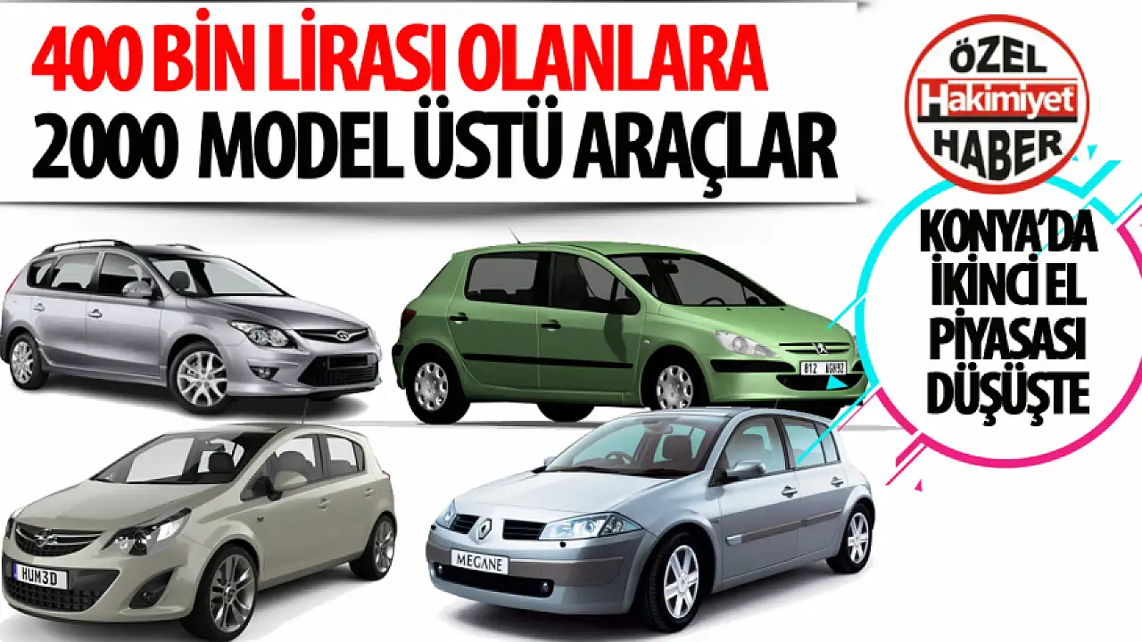 Konya'da ikinci el araç piyasasında devam eden düşüş, 400 bin lirası olan ve 2000 model üstü araç almayı düşünenlerin ilgisini çekiyor.