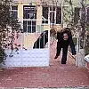 Işıklar Mahallesi İğneci Sokak'ta 16 Ocak akşam saatlerinde üç tekerli motorlu araçla gelen iki şüpheliden biri, Serdar Sitesi'nin bahçe kapısını saniyeler içinde yerinden söktü.