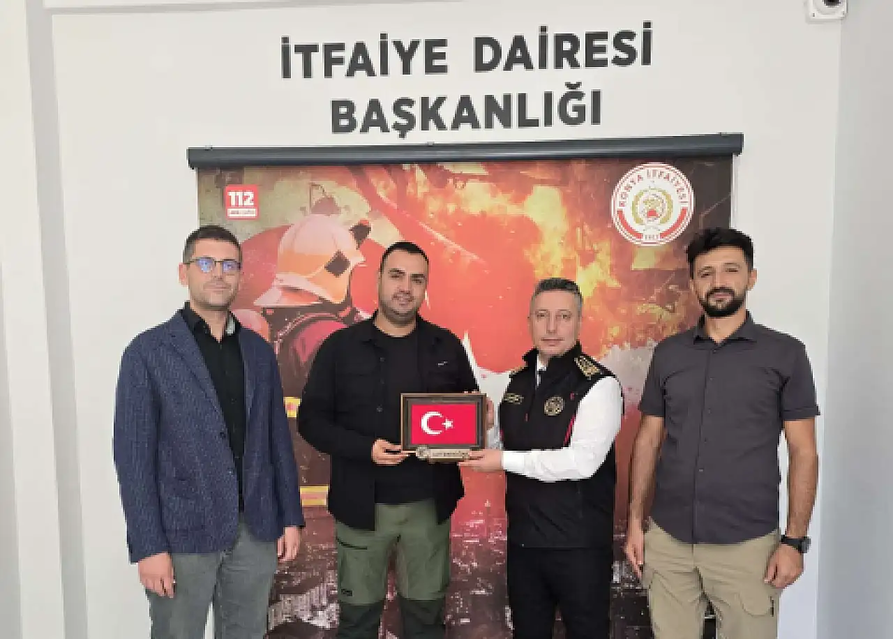 Yaren Arama Kurtarma Eğitim ve Yardımlaşma Derneği yönetimi, İtfaiye Haftası dolayısıyla Konya İtfaiyesi'ni ziyaret etti.