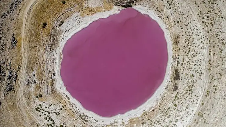 Karapınar ilçesinde bulunan ve karstik bir yapıya sahip olan Meyil Obruk Gölü pembe renge büründü.