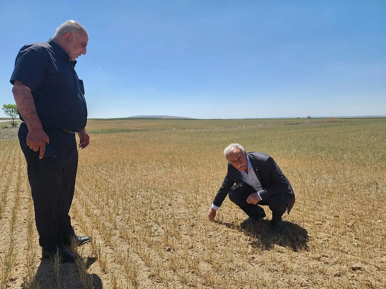 Yapılan gözlemlerde, başta arpa olmak üzere buğday ve mercimek tarlalarının kuraklıktan etkilenerek kuruduğu tespit edildi.