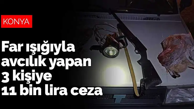 Konya'nın merkez Meram ilçesinde, far ışığıyla kara avcılığı yaptığı ileri sürülen 3 kişi yakalandı. Avcılarda toplamda 11 bin liralık ceza uygulandı.