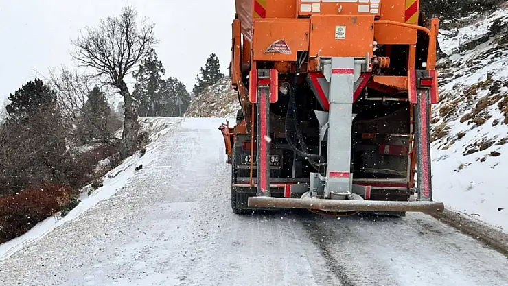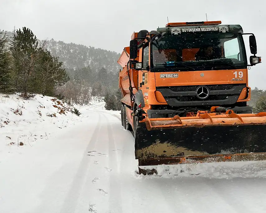 Konya'nın Bozkır ve Hadim ilçelerinde etkili olan kar yağışı sonrası, mahalle yolları ve ana güzergâhlarda kar temizleme çalışmaları aralıksız sürüyor.