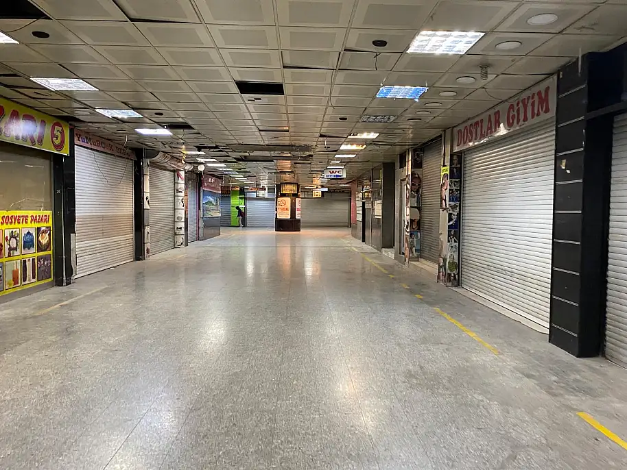 Esnafın tahliyesiyle birlikte tamamen boşalan çarşıda kapanış öncesi büyük indirimler yapılmış, vitrinlere “kapatıyoruz”, “stoklar bitiyor” ve “etiketin yarısı” gibi afişler asılmıştı.