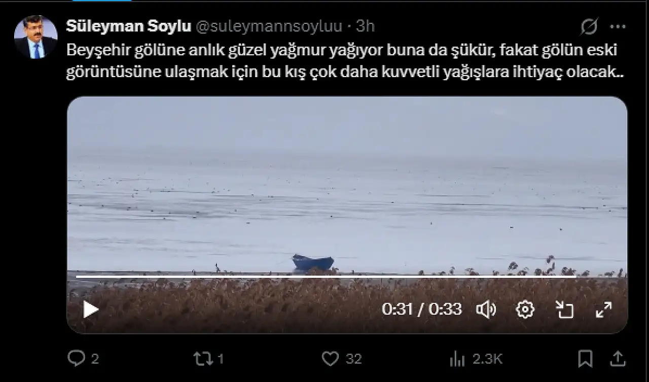 Selçuk Üniversitesi Ziraat Fakültesi Öğretim Üyesi Prof. Dr. Süleyman Soylu, yağmurun göl ekosistemi açısından olumlu bir gelişme olduğunu ancak kalıcı bir iyileşme için yeterli olmadığını söyledi. Soylu, Beyşehir Gölü’nün eski su seviyelerine ulaşabilmesi için kış aylarında daha yoğun ve düzenli yağışların şart olduğunu dile getirdi.